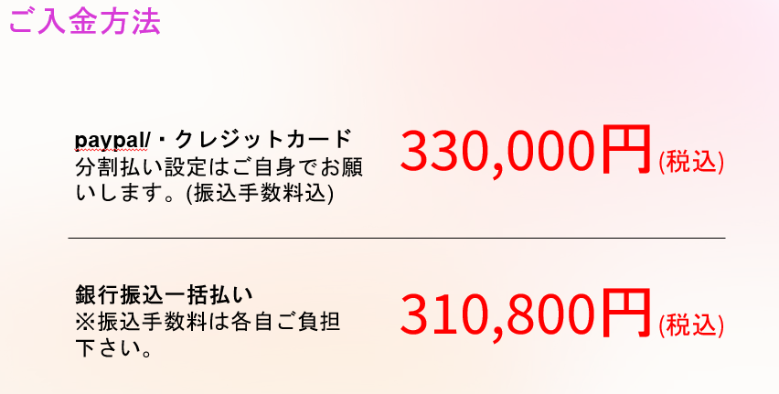 銀行振込一括払いの場合(振込手数料は各自ご負担下さい)¥310,800